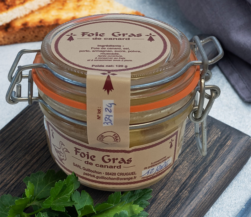Savourez l’excellence de notre foie gras de canard entier en bocal de 120 g, préparé avec soin selon une recette traditionnelle transmise de génération en génération. Confectionné à partir de canards élevés en plein air en Bretagne, ce foie gras authentique allie finesse et caractère. Idéal pour un repas en amoureux, un dîner festif ou une idée cadeau gourmande, il se distingue par sa pureté, sans additifs ni conservateurs, et par sa richesse en goût, fidèle aux traditions du terroir.